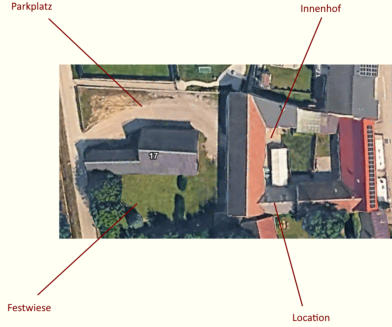 Auf unserer Festwiese mit knapp 700 m² haben Sie die Möglichkeit, Ihre Feier im Grünen auszurichten.Auf Wunsch stellen wir ein Zelt mit 6 x 8 Metern für Sie auf.Die rustikale Scheunenwand bietet zudem eine ideale Kulisse, vor der eine Bühne mit DJ perfekt platziert werden kann.